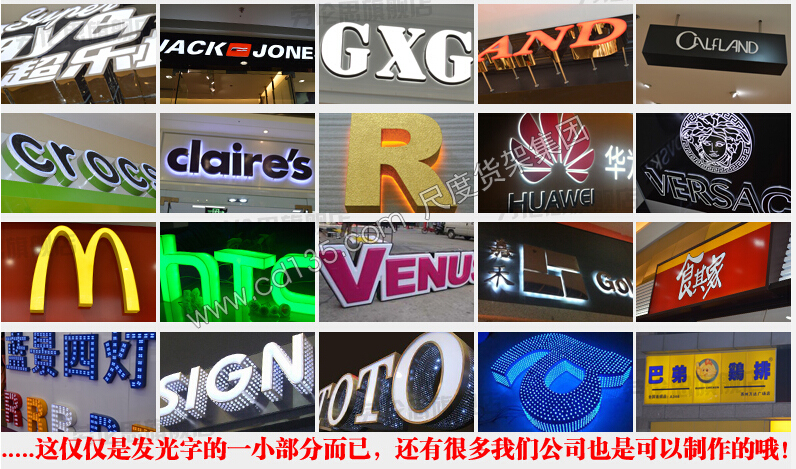 招牌應(yīng)用材料工藝分類:樹(shù)脂發(fā)光字,有機(jī)工藝,吸塑字、吸塑燈箱,LED顯示屏,外露發(fā)光字,亞克力